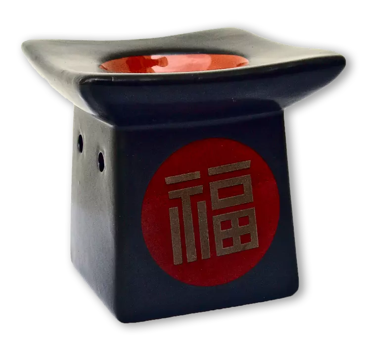 Аромалампа Пагода черная с иероглифами и красной чашей