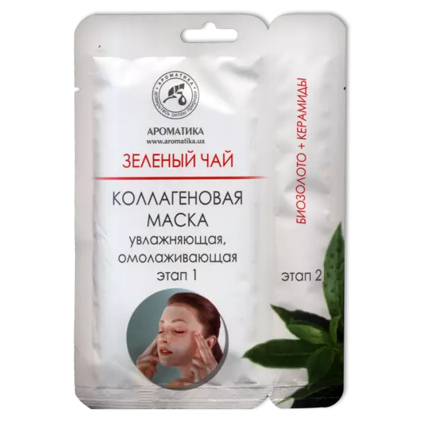 Двухэтапная коллагеновая маска Ароматика С экстрактом зеленого чая, Вес 50 г.
