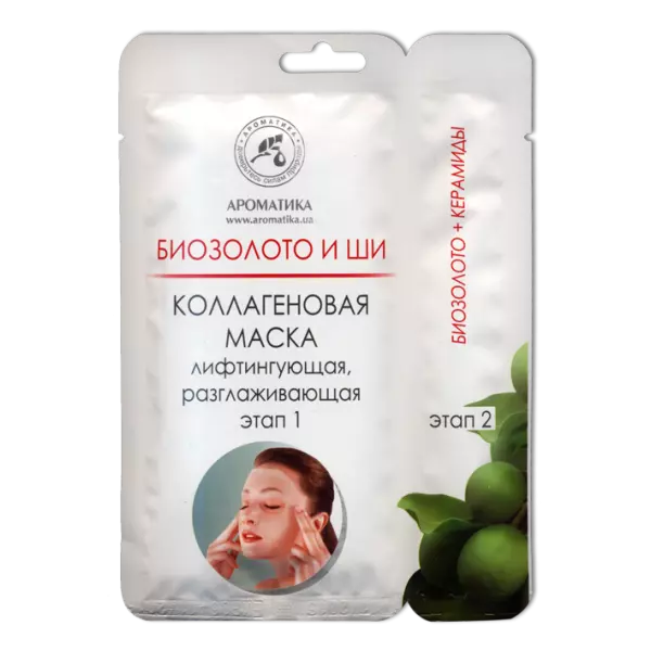 Двухэтапная коллагеновая маска Ароматика С элементами биозолота и маслом ши, Вес 50 г.