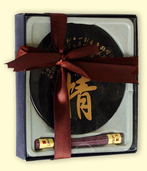 золотистыми иероглифами и отверстием для аромапалочки. Диаметр