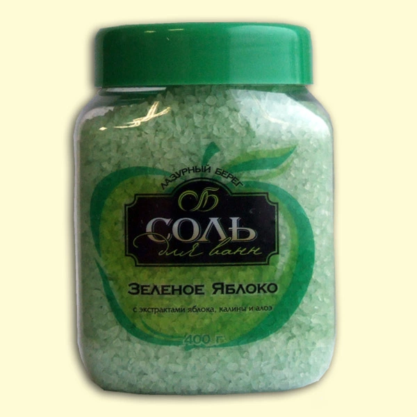 - Состав: соль гранулированная, экстракты яблока, калины и алоэ, ароматическая композиция, красители.